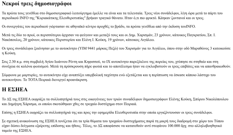 Σήμερα έβλεπα τα ρεπορτάζ για το προχθεσινό ατύχημα με την πόρσε που προσέκρουσε με υπερβολική ταχύτητα σε σταθμευμένο όχημα σκοτώνοντας τον οδηγό, τον συνοδηγό καθώς και μια μητέρα με το παιδί της που επέβαιναν στο σταθμευμένο όχημα. Βλέποντας τα όμορφα πρόσωπα των νεαρών που επέβαιναν στην πόρσε -γόνοι καλών οικογενειών, με μόρφωση και οικονομική επιφάνεια- δεν είδα καμία ταξική υπεροχή, παρά μόνο δυο παιδιά δυο νεαρούς, δυο τρυφερά χαρούμενα πρόσωπα τίποτα άλλο…